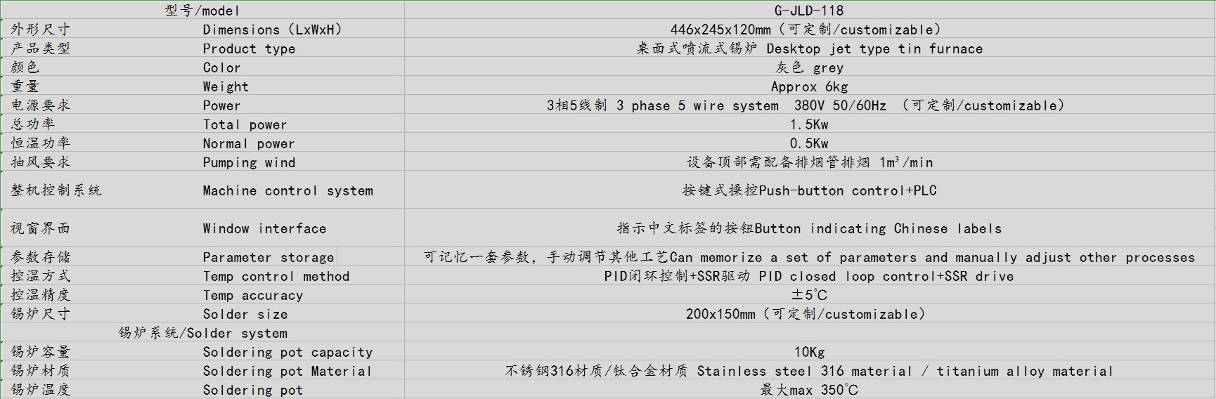 发热芯及热电偶均采用进口组件制作,能快速溶解无铅锡条。用锡量少,耗电量小、节能,升温快,使用寿命长。