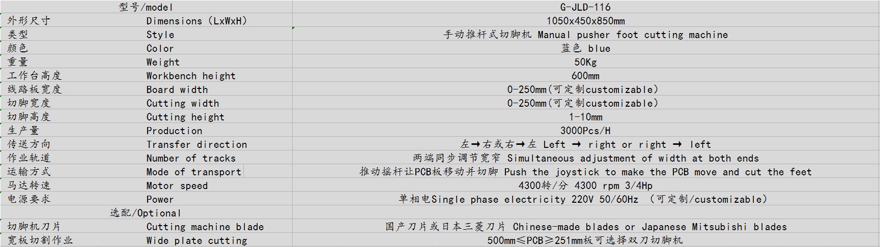 8,刀片材质:钨钢切脚机刀片(选配) ;