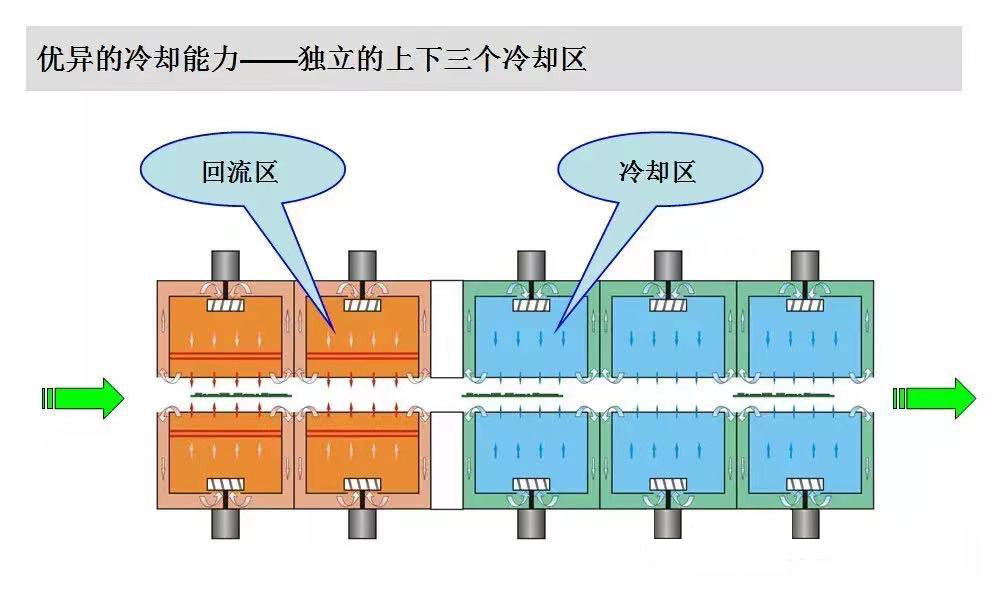 说明:热传递效率是产品品质的及耗电量的全面体现,传递效率差的香蕉视频下载污,则焊接区的设定温度就要高一点,还有可能8温区的香蕉视频下载污要设定3个焊接区,温度设定高了则对元器件有很大的损害,影响元器件的寿命,增加热量的损耗。