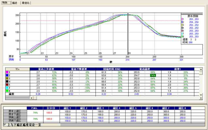 6、温差:在不窜温的情况下预热区与预热区能做到的量大温差,预热区与回流区能做到的量大温差。