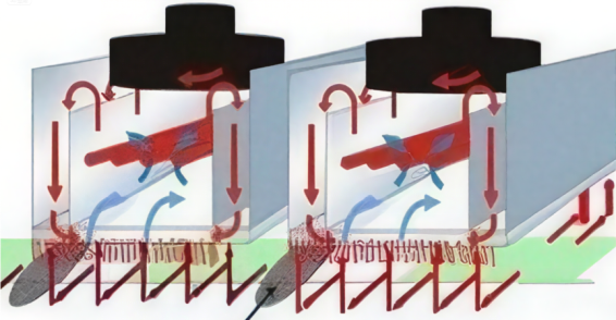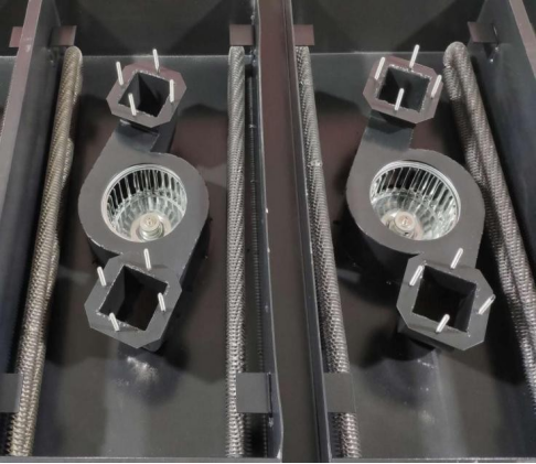 3,风叶结构限制,无法形成强增压微循环结构,对于铜、铝基板,带工装治具等吸热产品的热穿透性弱。
