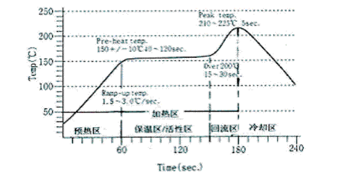为了加深对理想的温度曲线的认识,现将各区的温度、停留时间以及焊锡膏在各区的变化情况,介绍如下: