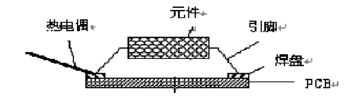 2 、热电偶的位置与固定热电偶的焊接位置也是一个应认真考虑的问题,其原则是对热容量大的组件焊盘处别忘了放置热电偶,见图 2 ,此外对热敏感组件的外壳, PCB 上空档处也应放置热电偶,以观察板面温度分布状况。