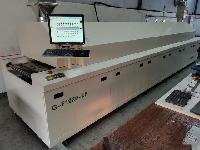 7. 根据电路板尺寸缓慢的调整导轨宽窄,机器必须保持平稳不得倾斜或有不稳定的现象,运行时除电路板和测温设备外严禁将其他物品放入炉腔内。