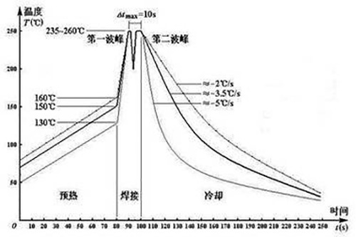 波峰焊预热温度:80℃~150℃,预热时间:40S-100S