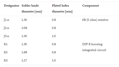 表1. 测试电阻器和DIP的通孔和焊盘的尺寸。