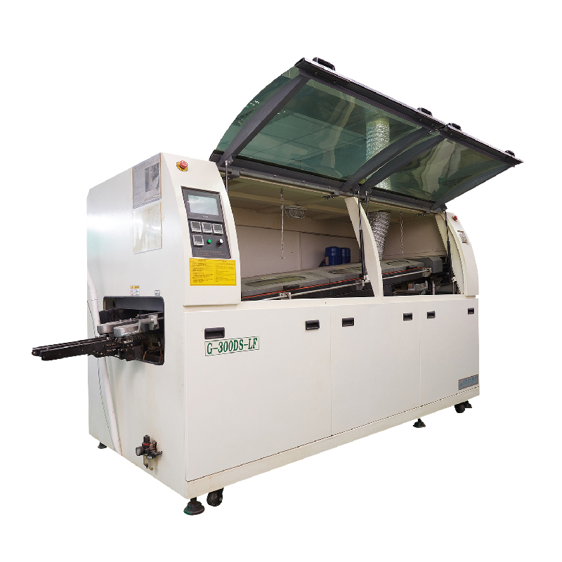 波峰焊锡机是在泵压作用下,使液态焊料表面形成特定形状的焊料波峰的一种工艺。当插入组件以固定角度通过焊料波时,焊点形成在销焊区域。在链式输送机的传动过程中,首先对焊机预热区的部件进行预热(部件的预热和温度仍由预定的温度曲线控制)。波峰焊锡机在实际焊接中,通常控制构件表面的预热温度,因此很多设备都增加了相应的温度检测装置(如红外探测器)。预热后,元件进入铅槽进行焊接。熔池中有熔化的液体焊料。钢浴底部的喷嘴将设置熔融焊料的波形,以便当部件的焊接表面通过波形时,它将被焊料的波形加热。同时,波峰焊锡机焊料的波形也会润湿焊接区域,扩大填充范围,最终实现焊接过程。如何选购波峰焊?