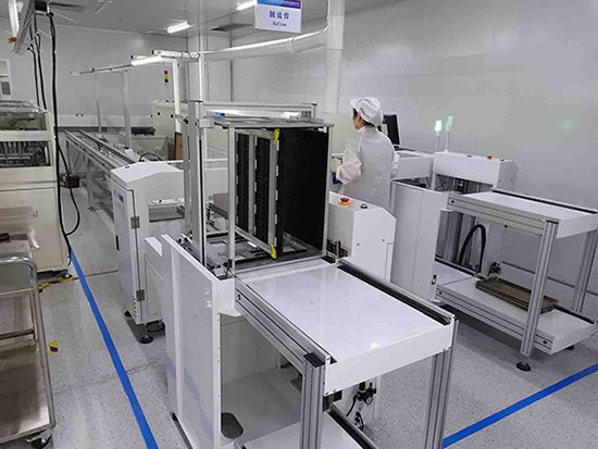 惠伦晶体晶振烤胶车间内场景(拍摄照片经由客户同意) 自动上下料机+双轨道香蕉视频下载污双倍产能